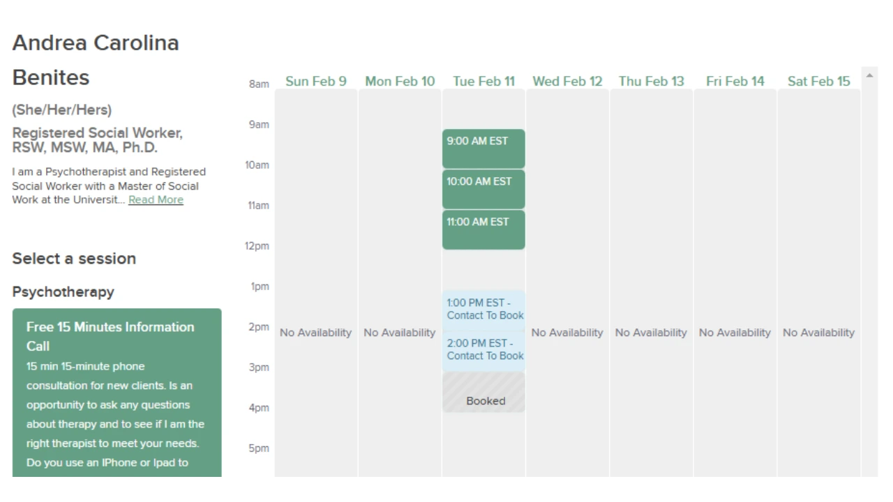 - Sessions are virtual (video), individual, and last 50 minutes.